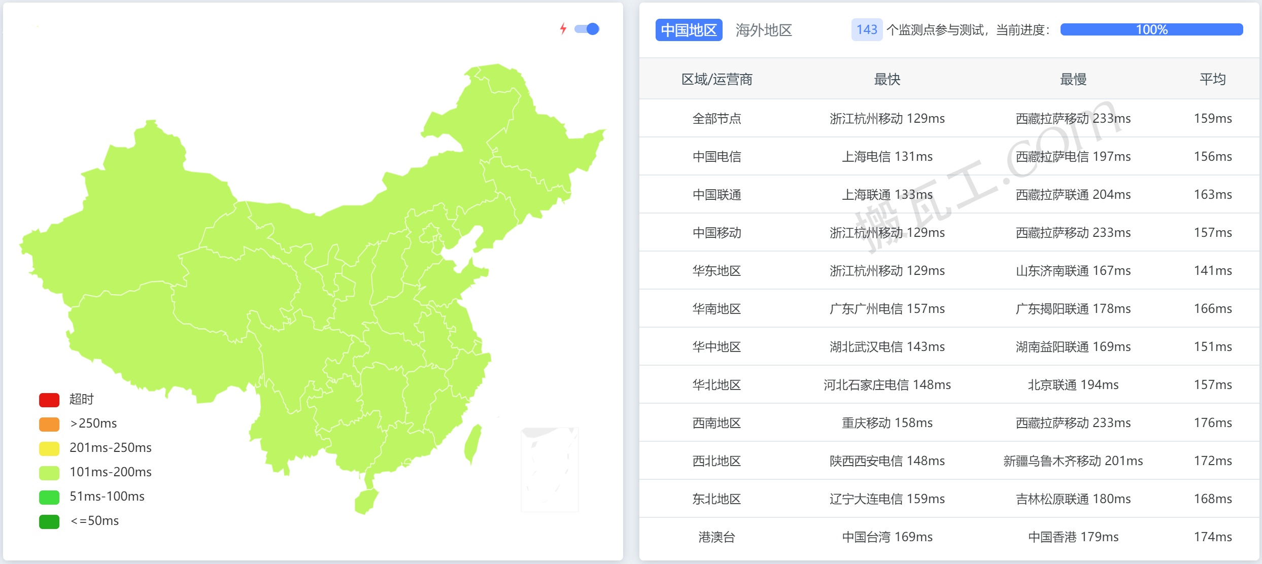搬瓦工美国洛杉矶DC9 CN2 GIA套餐(US - Los Angeles DC9 CN2GIA (USCA_9))直连中国大陆延迟表现测试结果:abcd