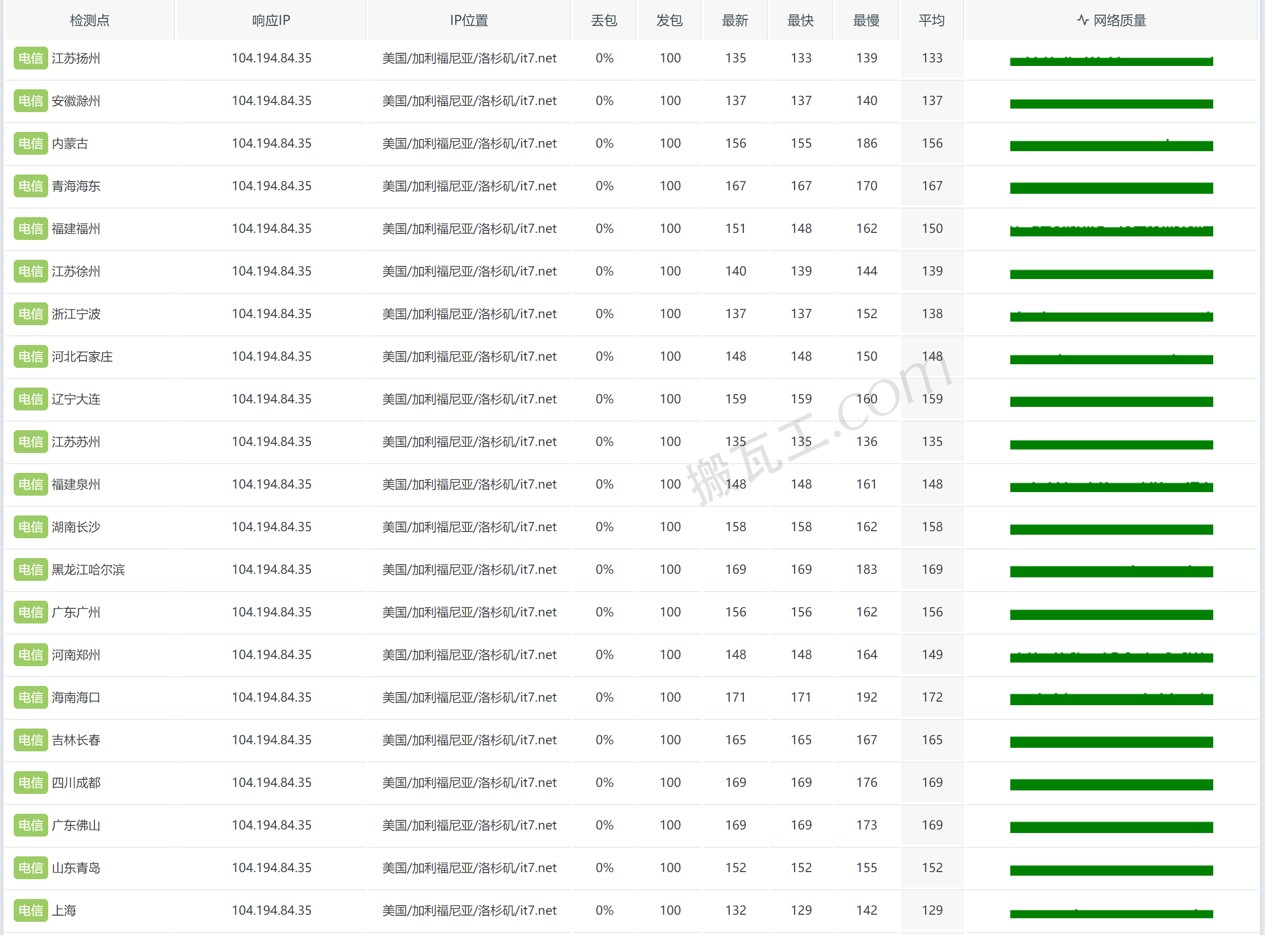 搬瓦工美国洛杉矶DC9 CN2 GIA套餐(US - Los Angeles DC9 CN2GIA (USCA_9))中国电信丢包表现测试结果:abcd