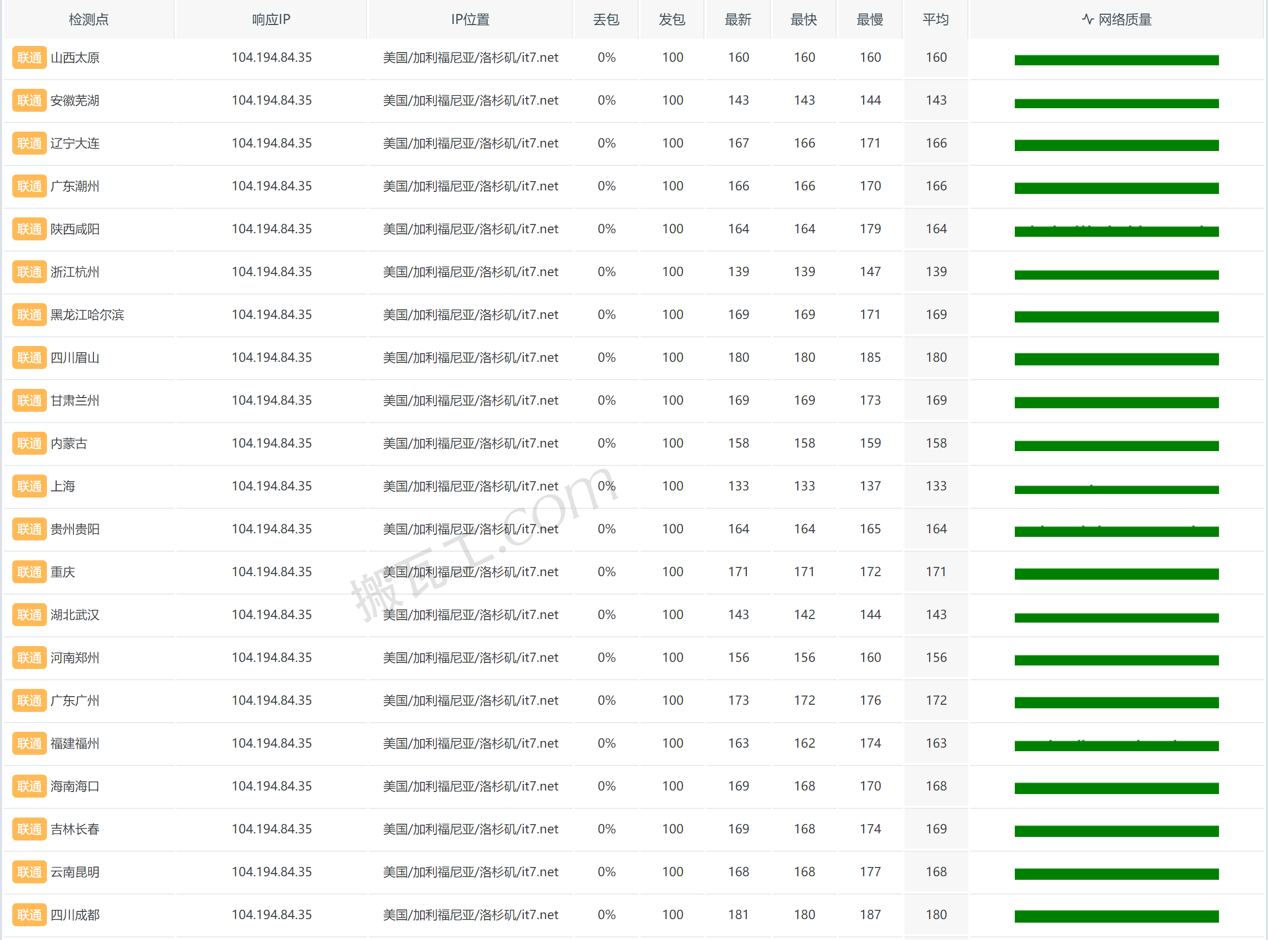 搬瓦工美国洛杉矶DC9 CN2 GIA套餐(US - Los Angeles DC9 CN2GIA (USCA_9))中国联通丢包表现测试结果:abcd