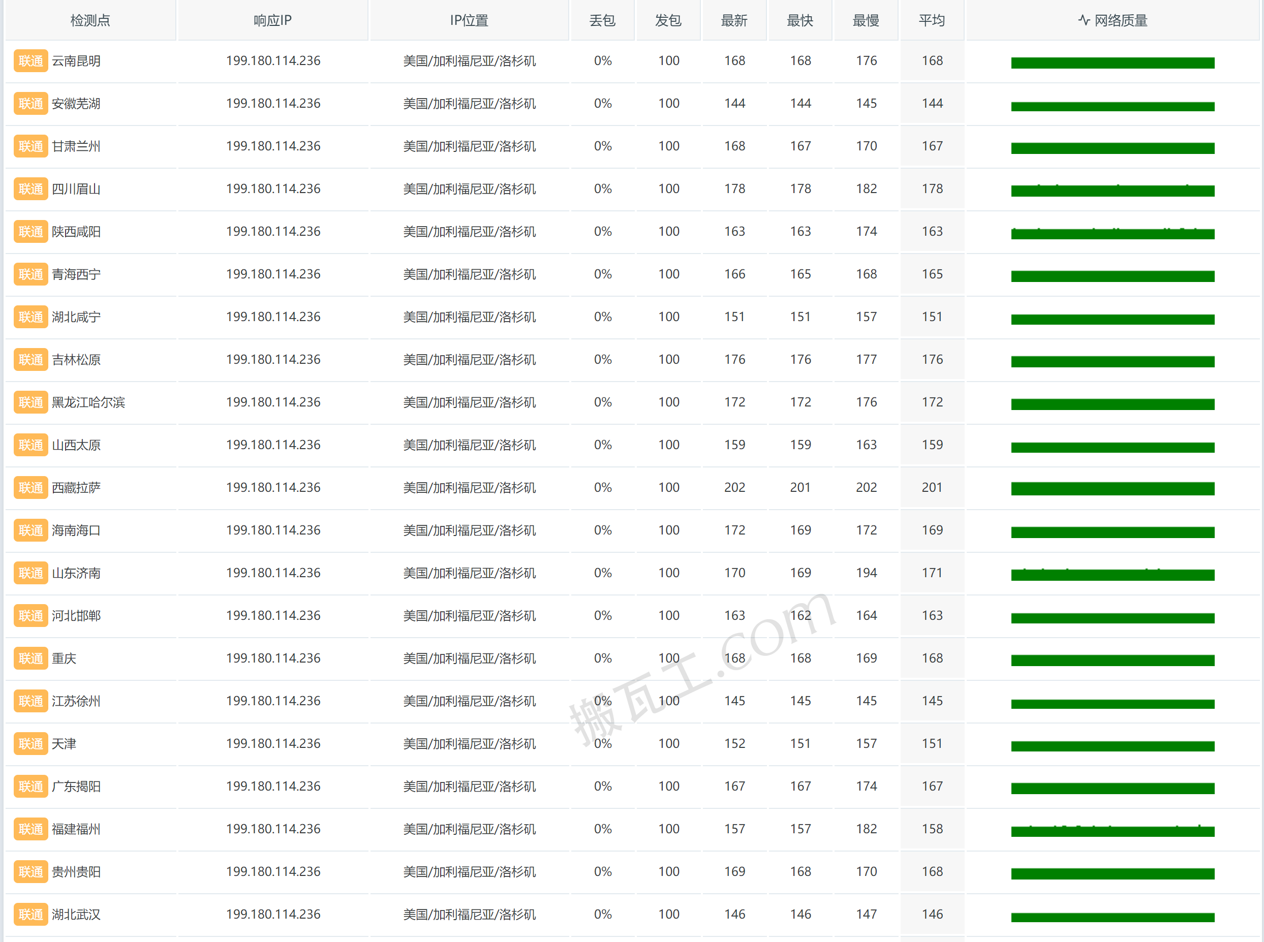 搬瓦工美国洛杉矶DC6 CN2 GIA套餐(US - Los Angeles DC6 CN2GIA (USCA_6))中国联通丢包表现测试结果: