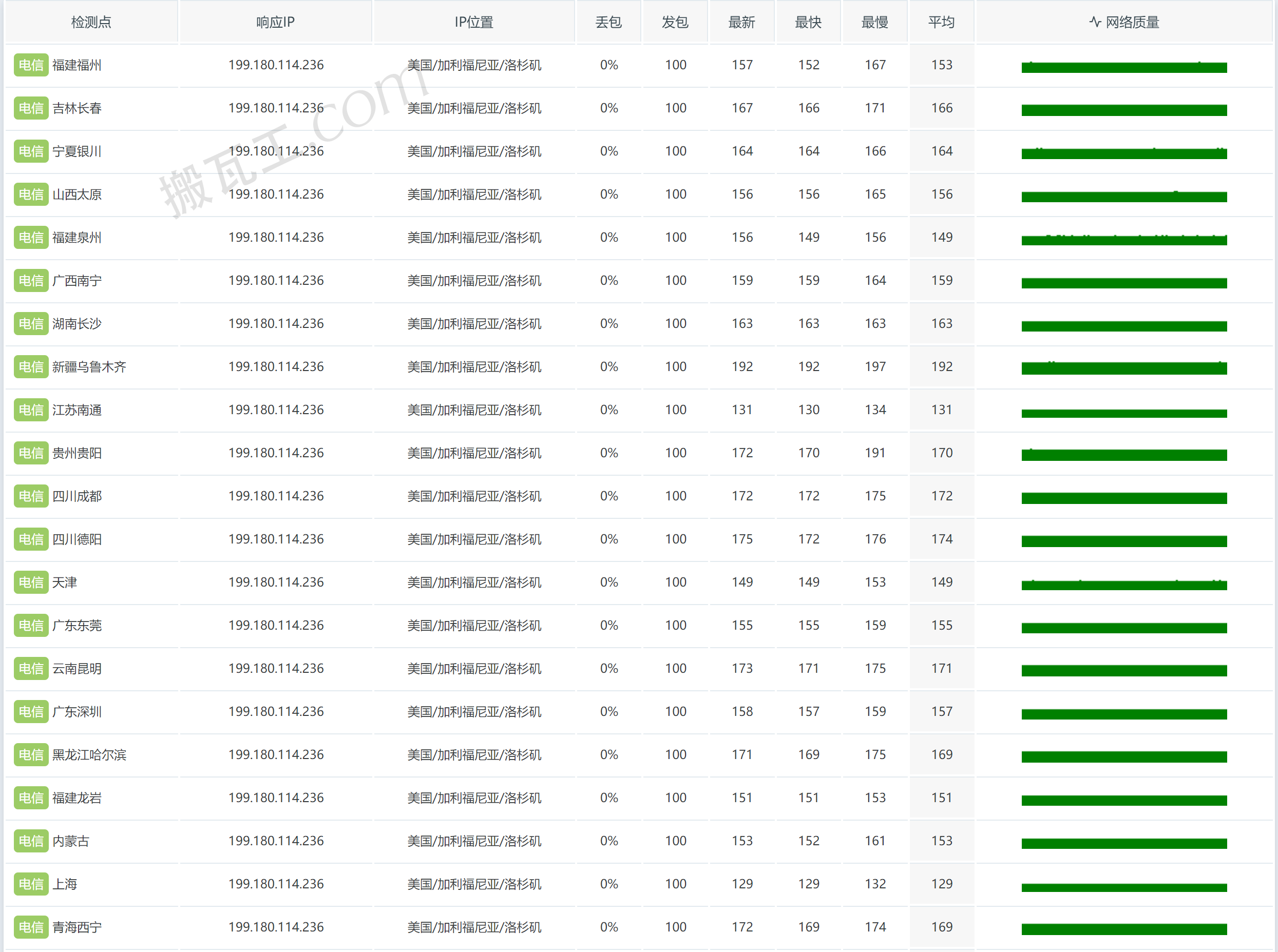 搬瓦工美国洛杉矶DC6 CN2 GIA套餐(US - Los Angeles DC6 CN2GIA (USCA_6))中国电信丢包表现测试结果: